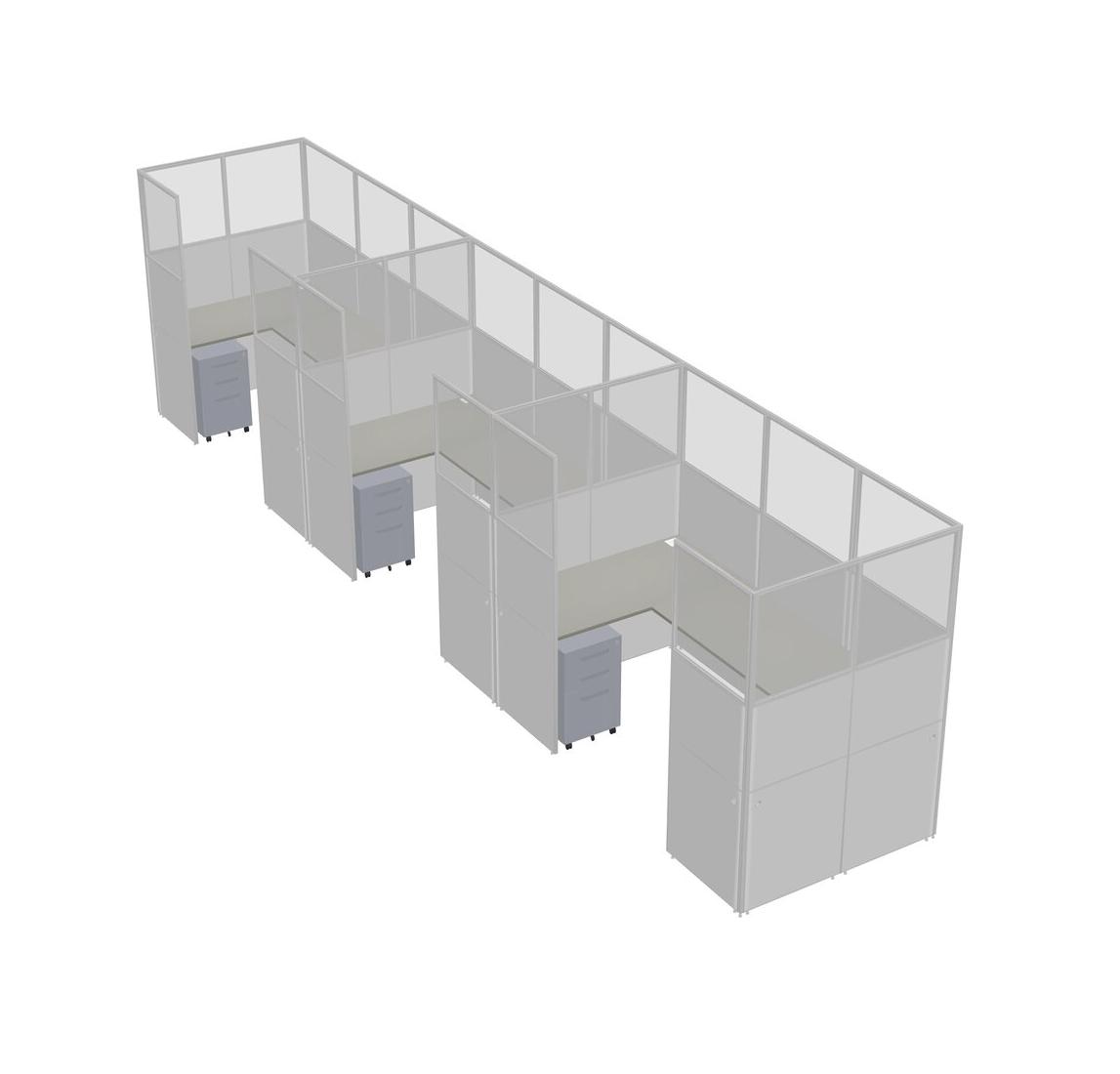 Grey Shadows U-shaped Panel System For 3 Person + Metal Mobile Drawers For 3 User(s)