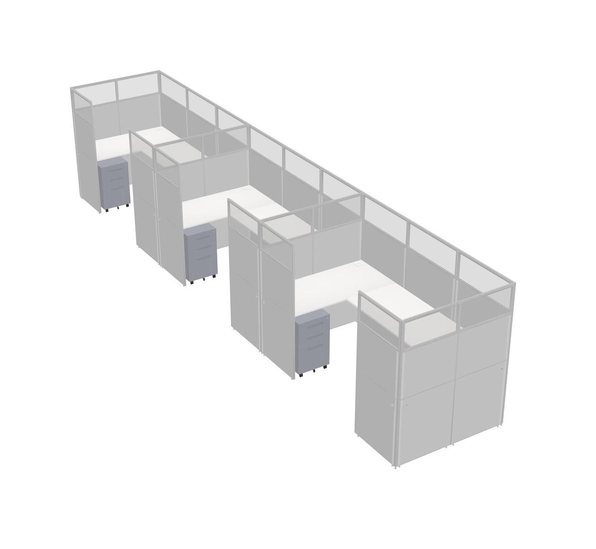 White U-shaped Panel System For 3 Person + Metal Mobile Drawers For 3 User(s)