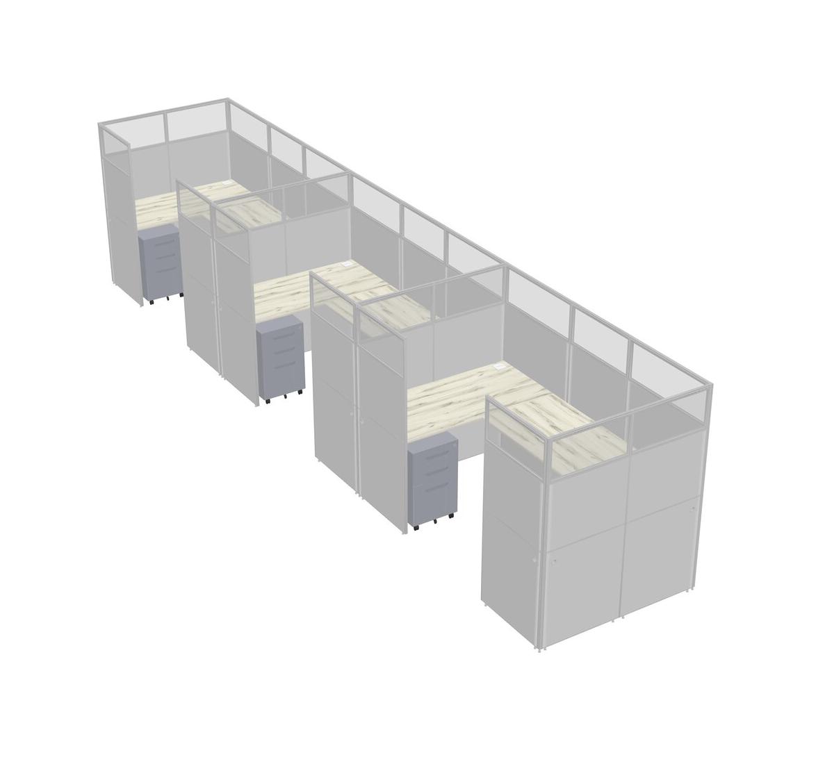 Heinne Holz U-shaped Panel System For 3 Person + Metal Mobile Drawers For 3 User(s)
