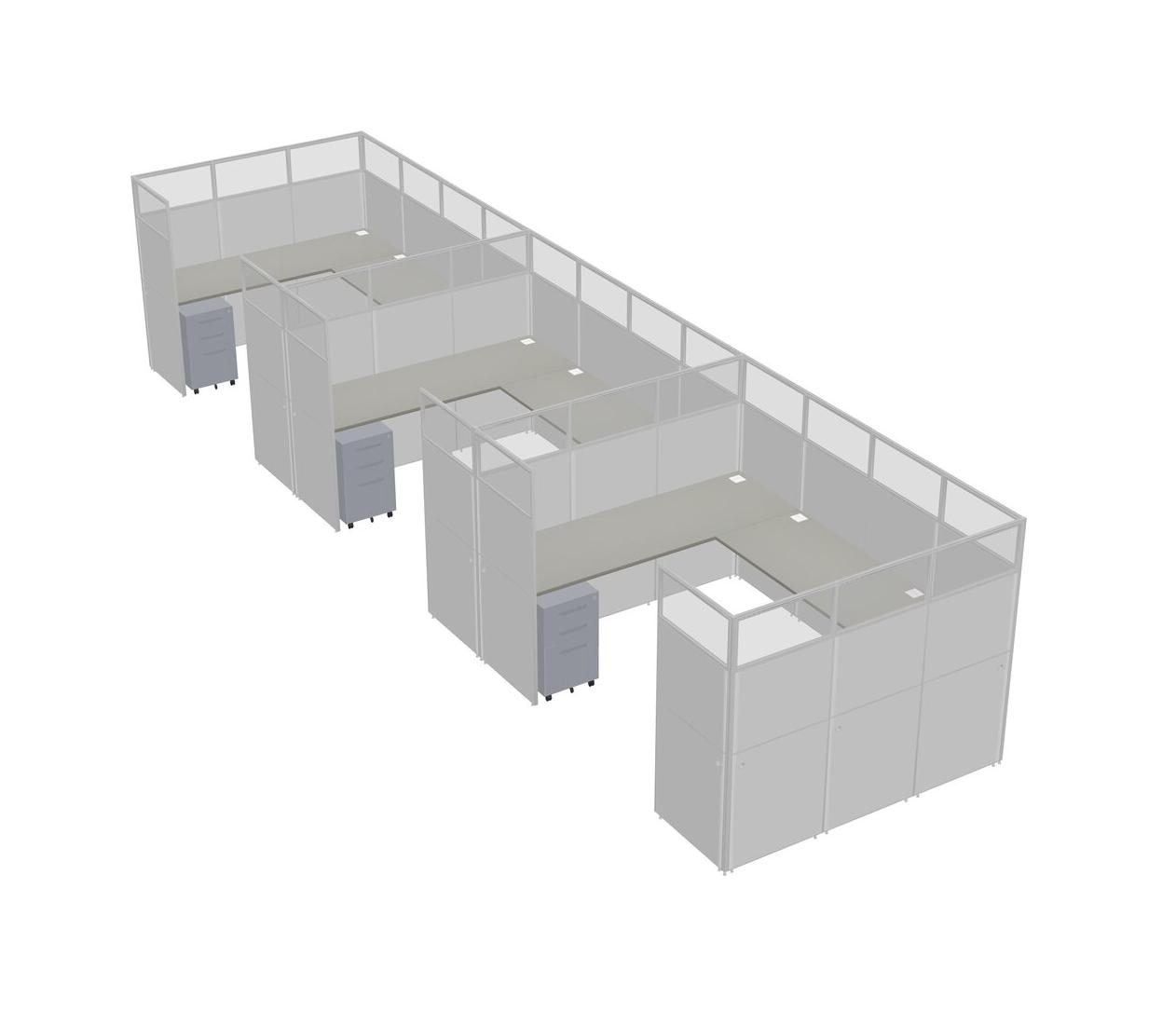 Grey Shadows U-shaped Panel System For 3 Person + Metal Mobile Drawers For 3 User(s)