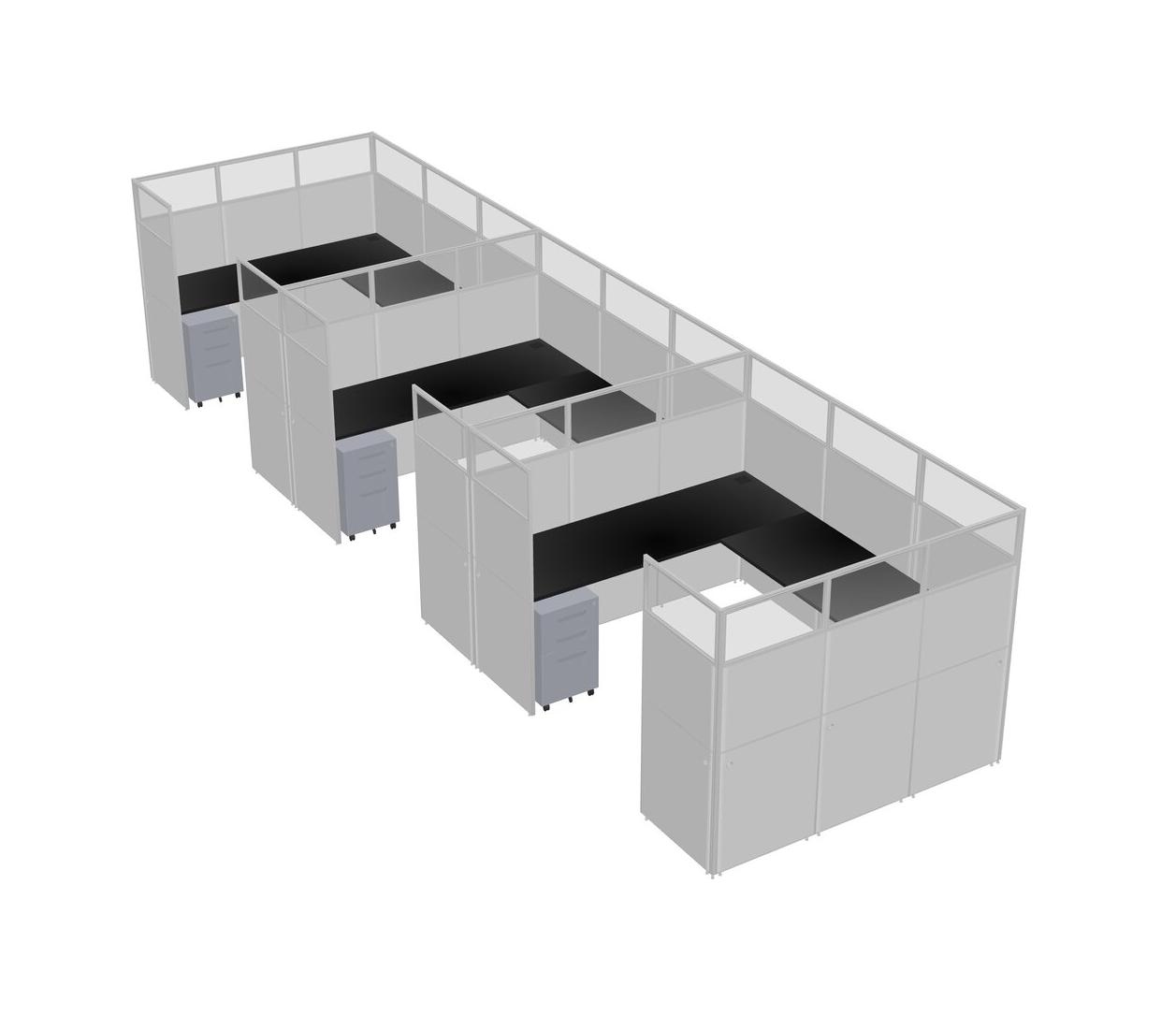 Black U-shaped Panel System For 3 Person + Metal Mobile Drawers For 3 User(s)