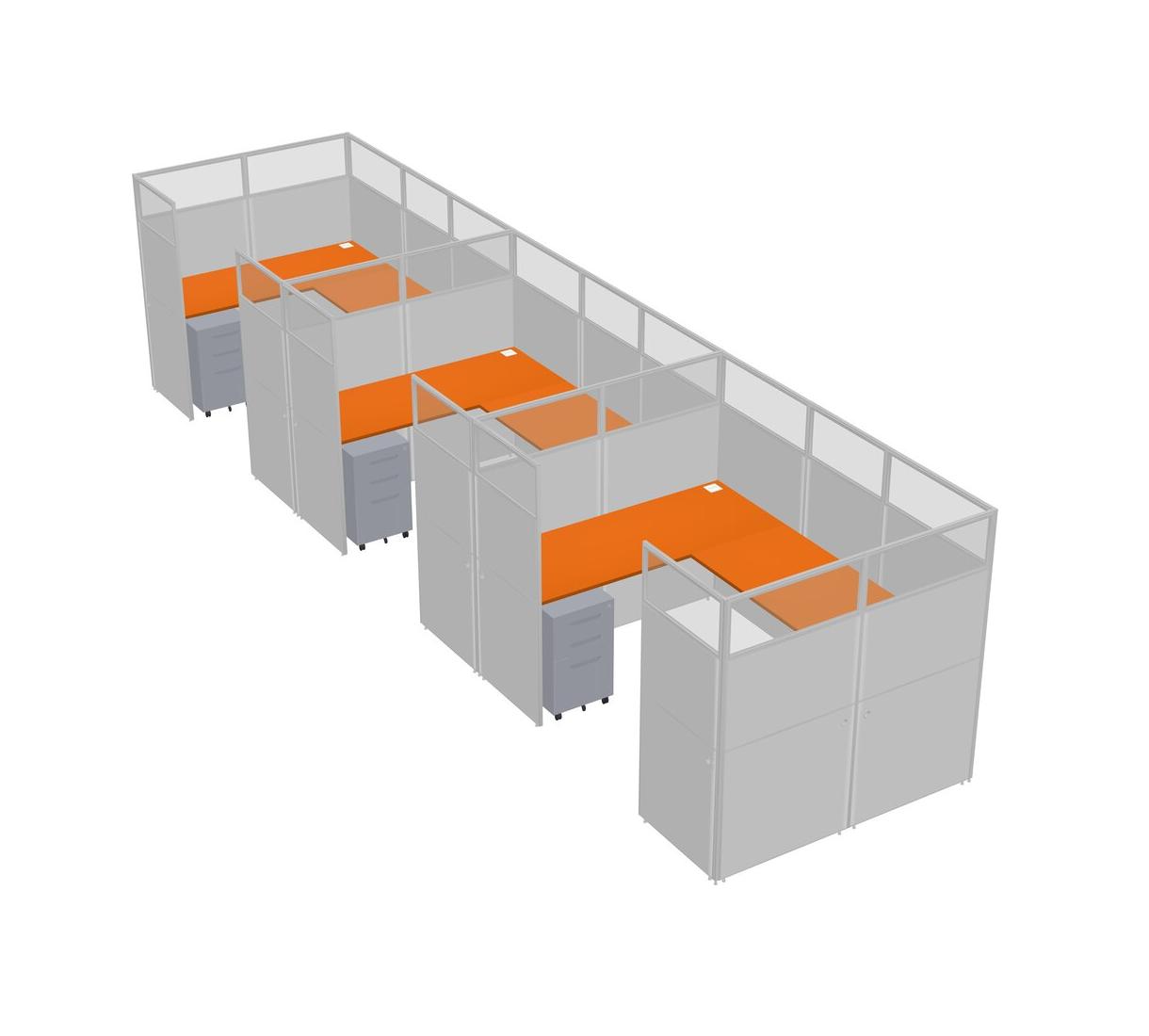 Orange U-shaped Panel System For 3 Person + Metal Mobile Drawers For 3 User(s)