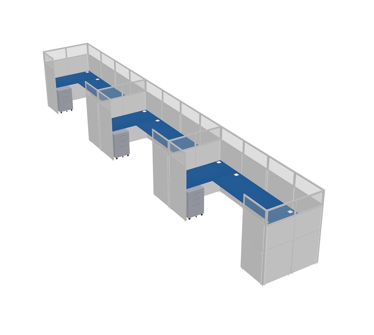 Prism Blue U-shaped Panel System For 3 Person + Metal Mobile Drawers For 3 User(s)