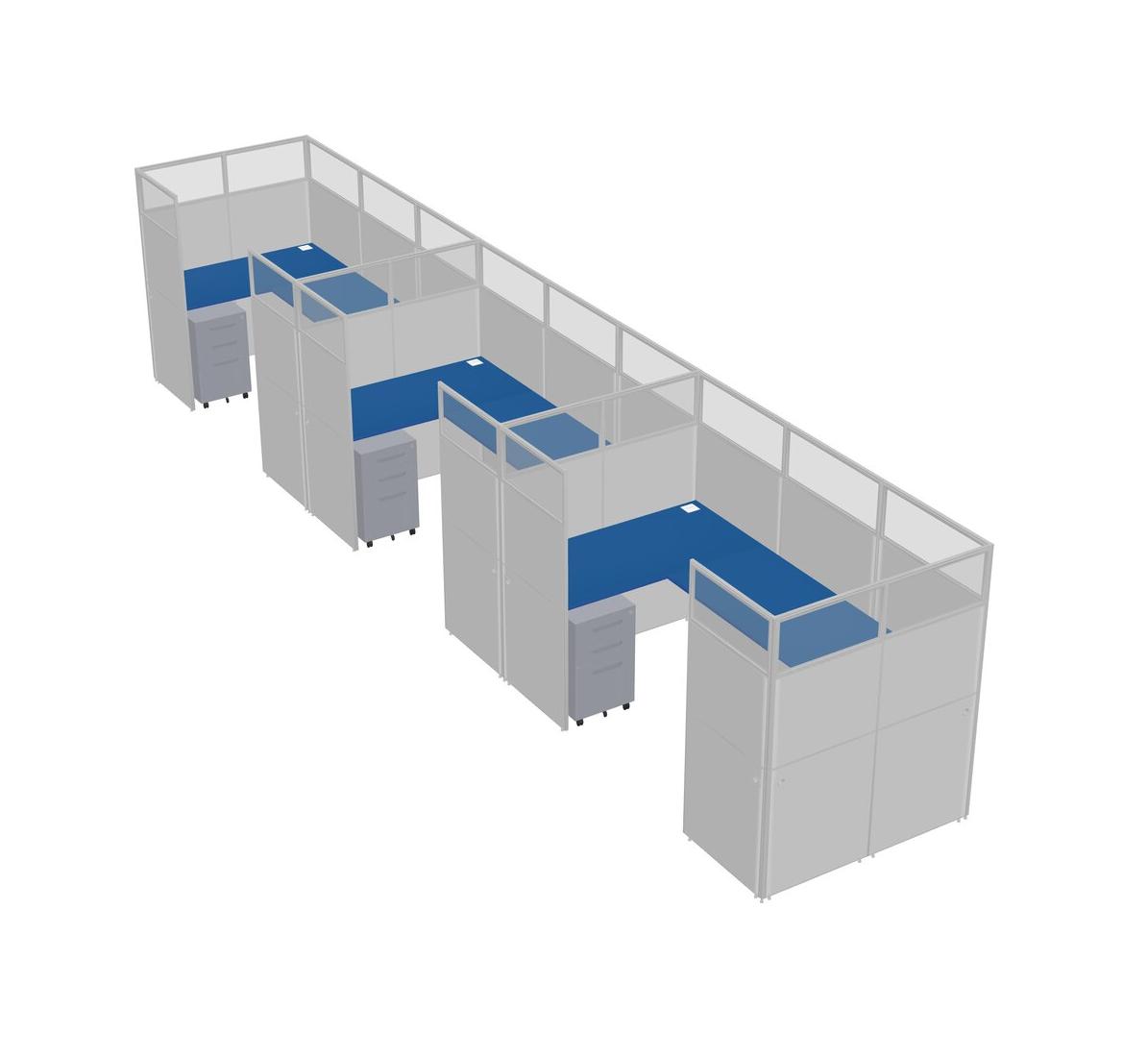Prism Blue U-shaped Panel System For 3 Person + Metal Mobile Drawers For 3 User(s)