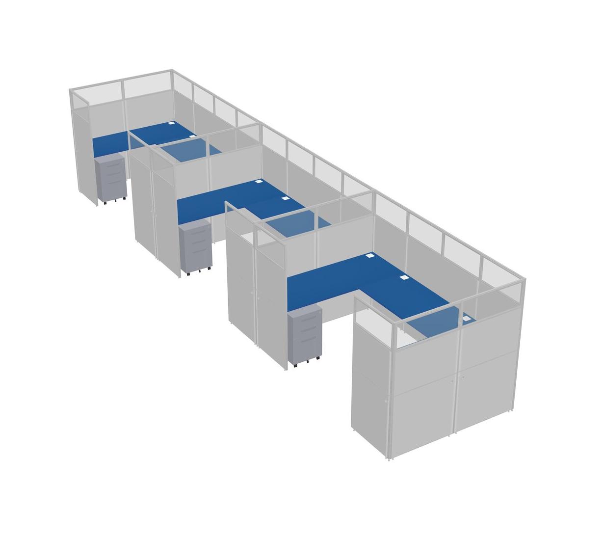 Prism Blue U-shaped Panel System For 3 Person + Metal Mobile Drawers For 3 User(s)
