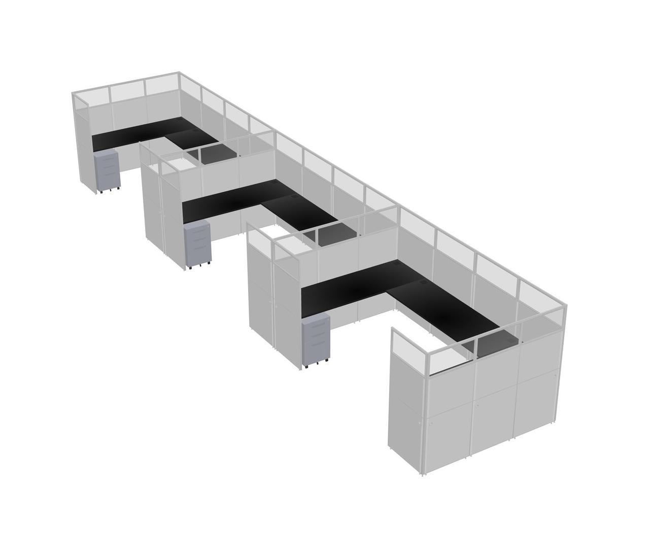 Black U-shaped Panel System For 3 Person + Metal Mobile Drawers For 3 User(s)