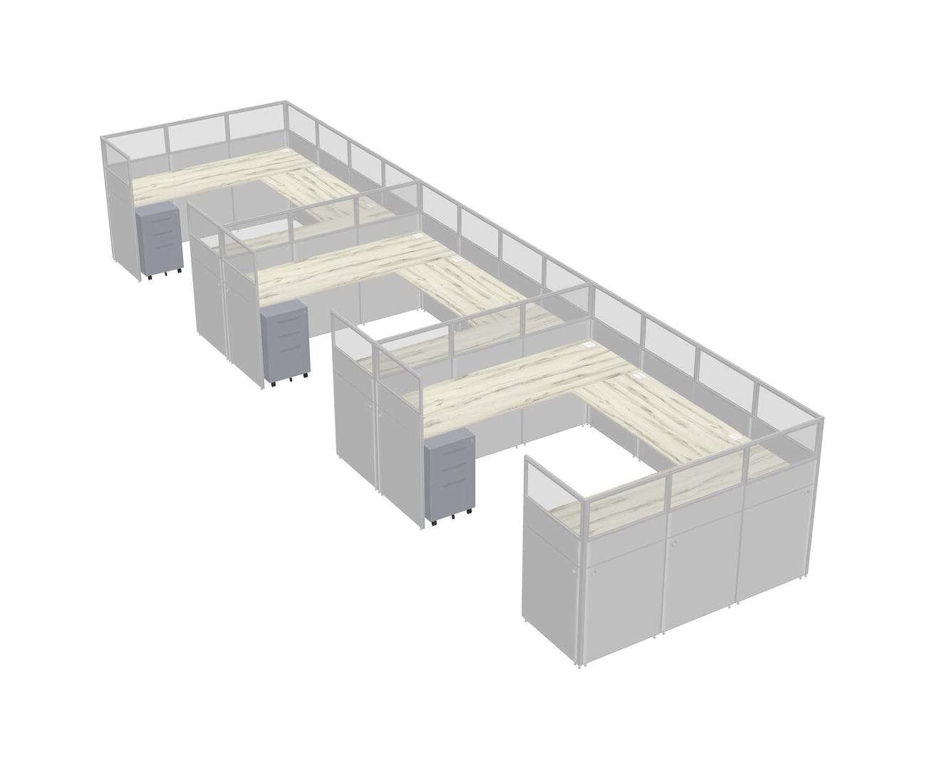 Heinne Holz U-shaped Panel System For 3 Person + Metal Mobile Drawers For 3 User(s)