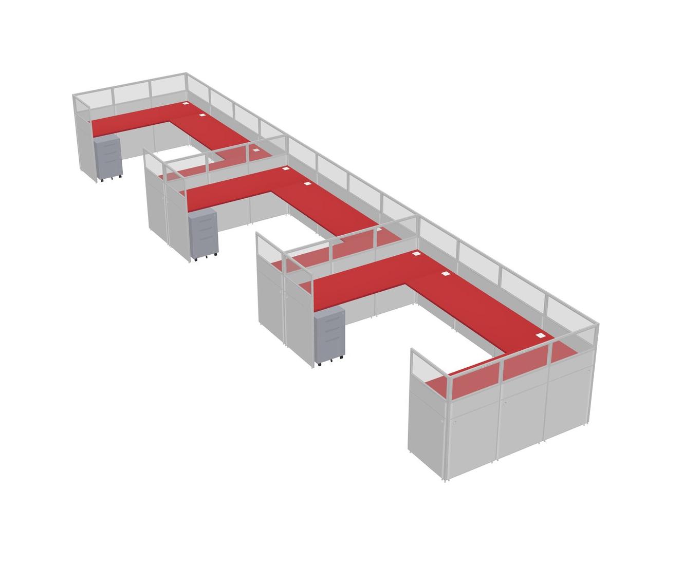 Prism Red U-shaped Panel System For 3 Person + Metal Mobile Drawers For 3 User(s)