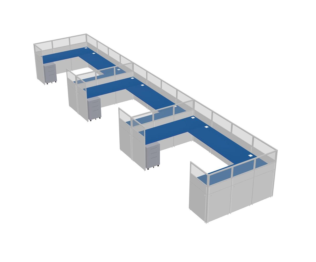 Prism Blue U-shaped Panel System For 3 Person + Metal Mobile Drawers For 3 User(s)