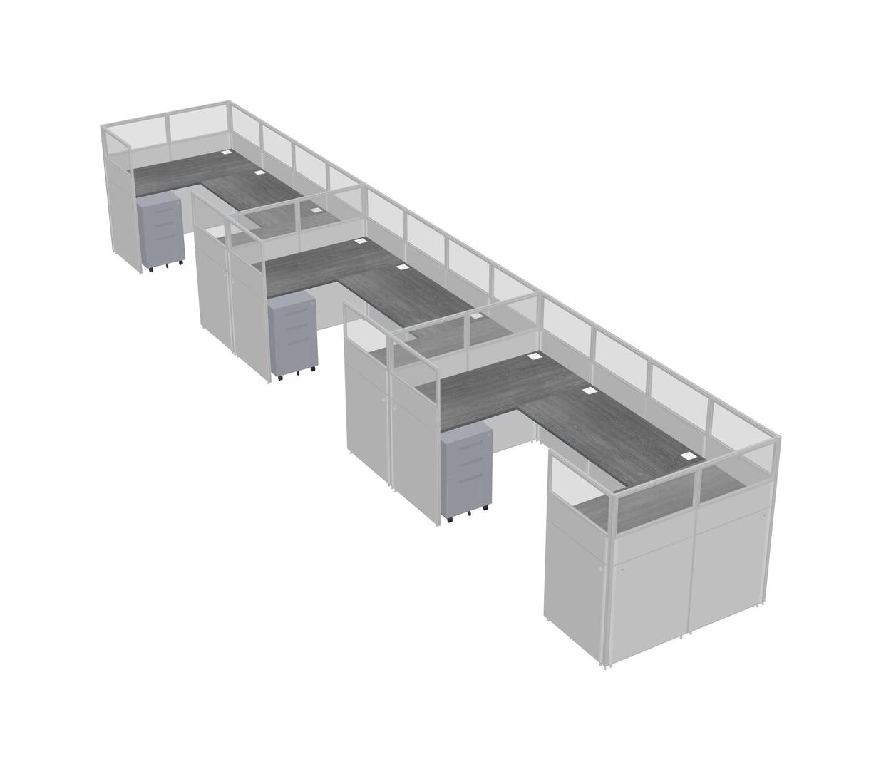 Grey U-shaped Panel System For 3 Person + Metal Mobile Drawers For 3 User(s)