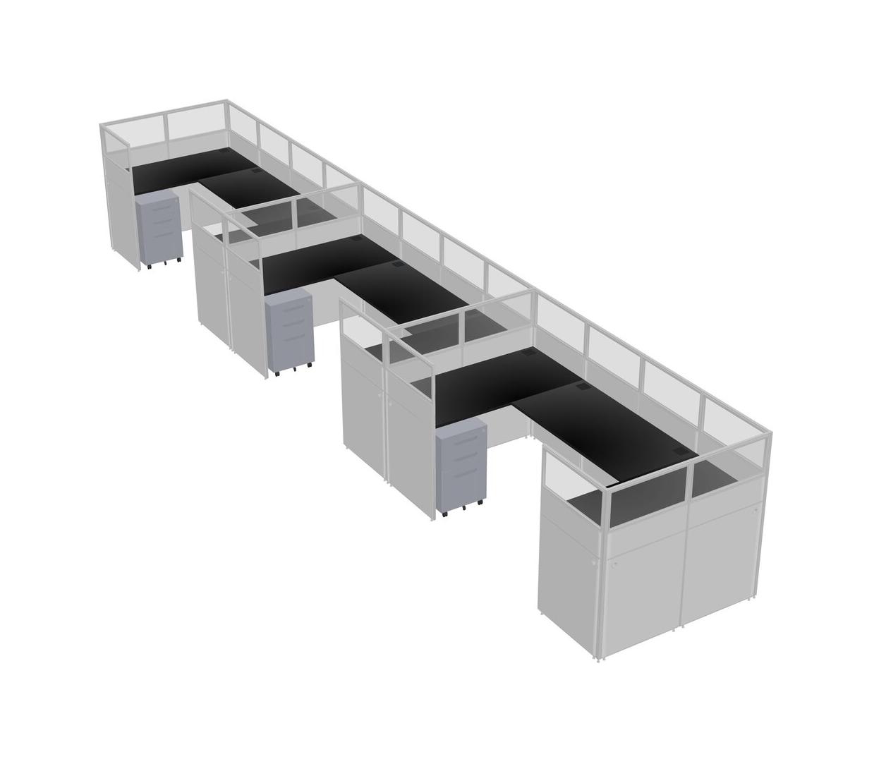 Black U-shaped Panel System For 3 Person + Metal Mobile Drawers For 3 User(s)