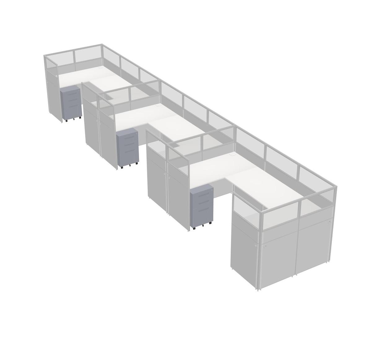 White U-shaped Panel System For 3 Person + Metal Mobile Drawers For 3 User(s)