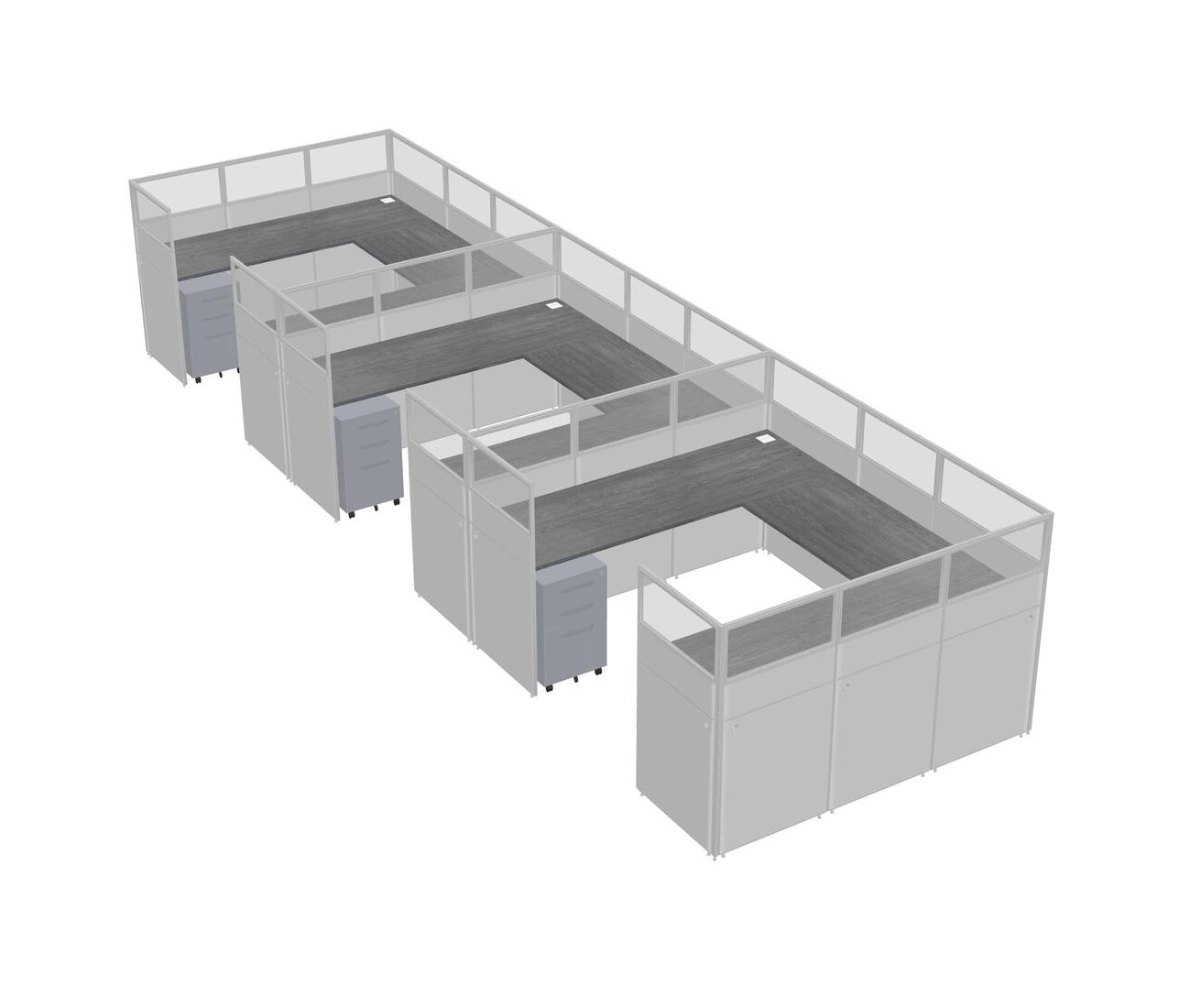 Grey U-shaped Panel System For 3 Person + Metal Mobile Drawers For 3 User(s)
