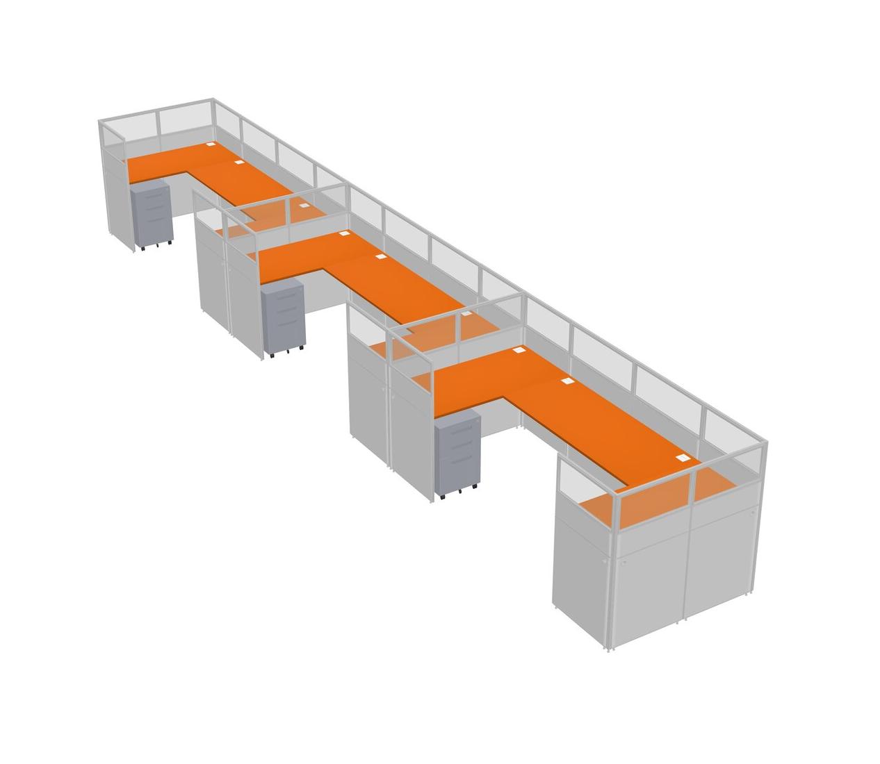 Orange U-shaped Panel System For 3 Person + Metal Mobile Drawers For 3 User(s)