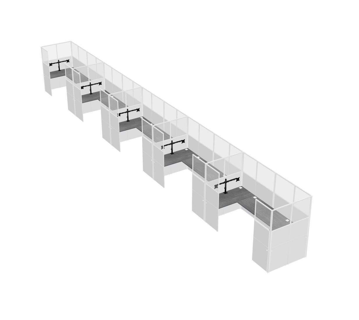 Grey U-shaped Panel System For 5 Person + Monitor Arm (double Arms) For 5 User(s)