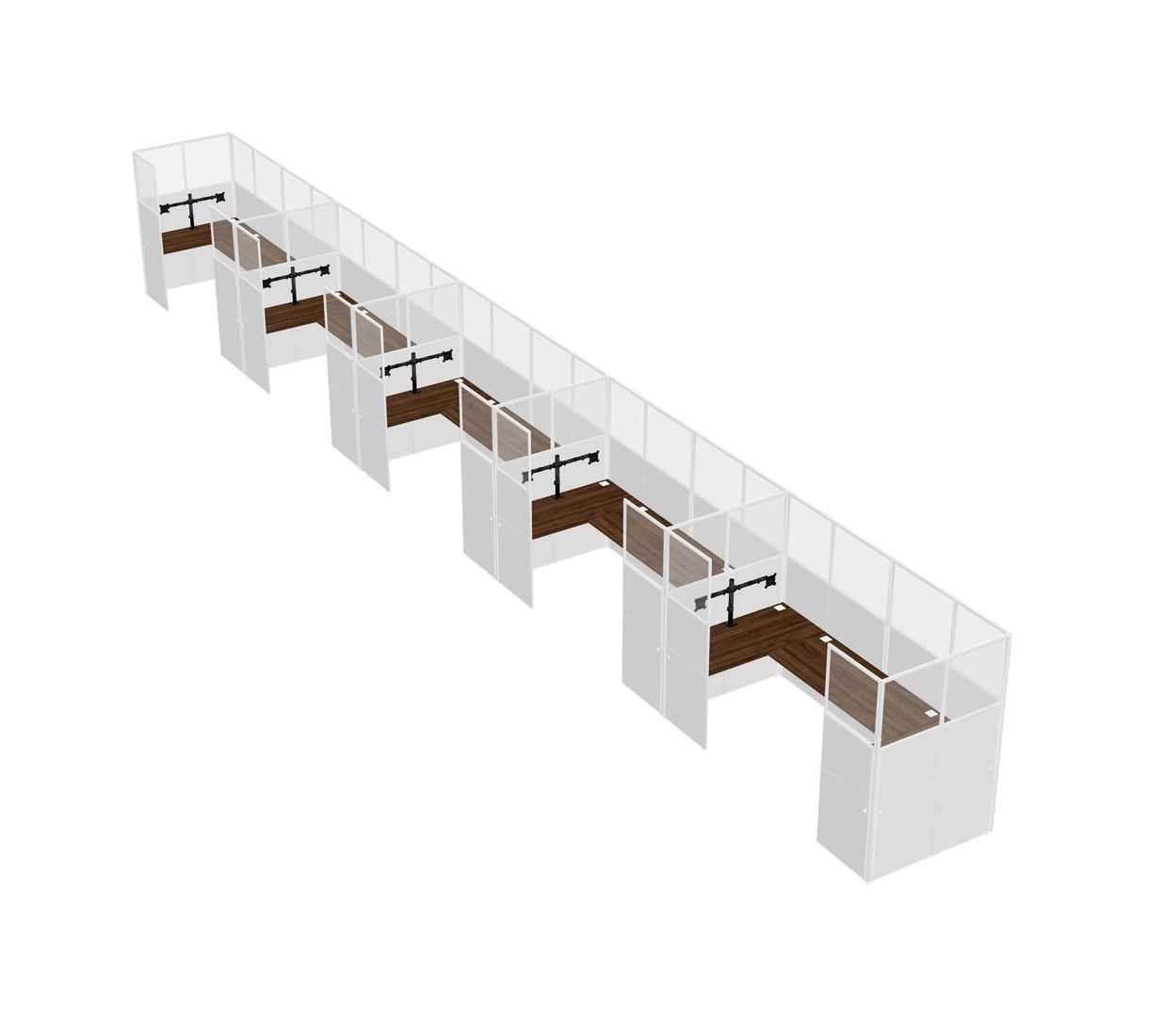 Columbia Walnut U-shaped Panel System For 5 Person + Monitor Arm (double Arms) For 5 User(s)
