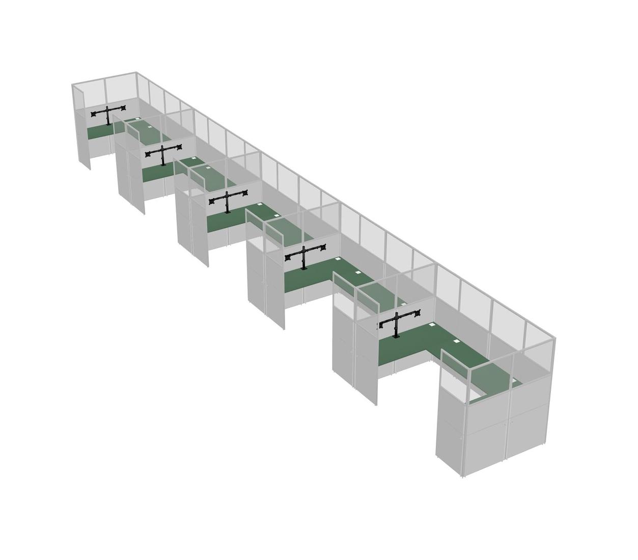 Green U-shaped Panel System For 5 Person + Monitor Arm (double Arms) For 5 User(s)