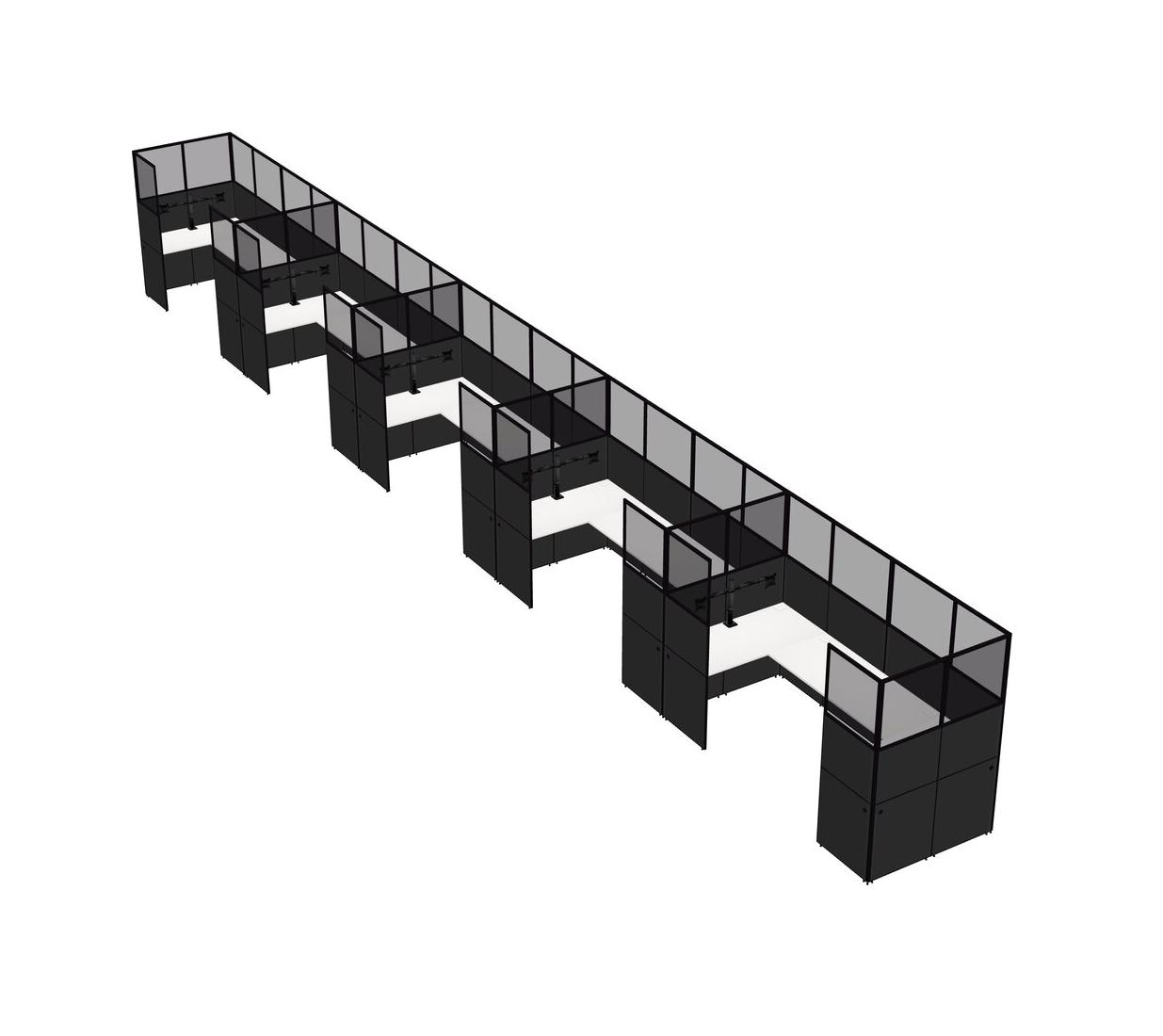 White U-shaped Panel System For 5 Person + Monitor Arm (double Arms) For 5 User(s)