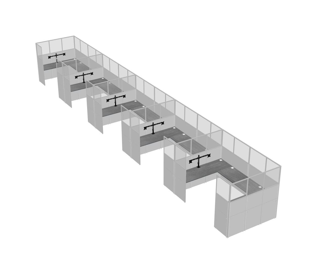Grey U-shaped Panel System For 5 Person + Monitor Arm (double Arms) For 5 User(s)