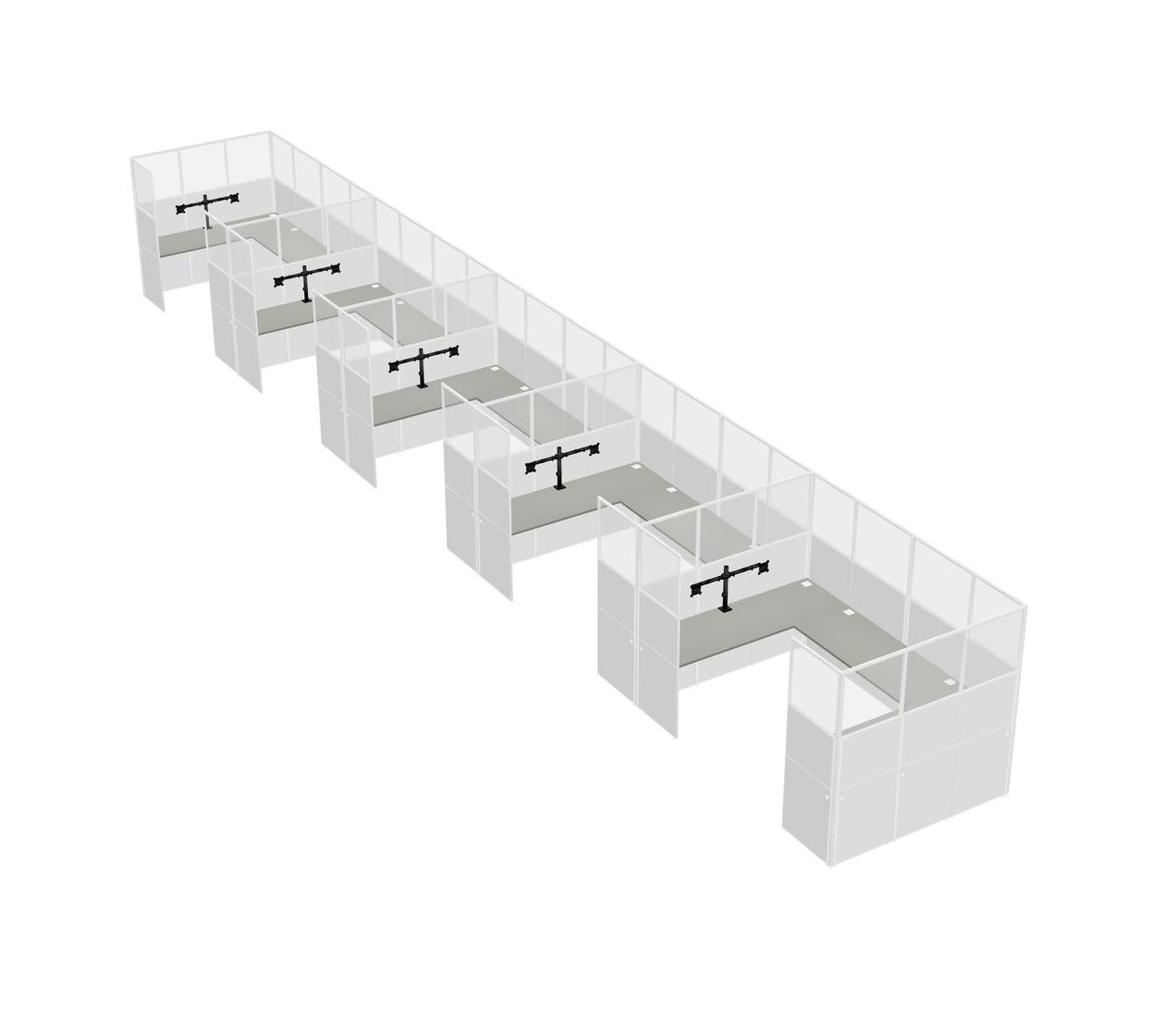 Grey Shadows U-shaped Panel System For 5 Person + Monitor Arm (double Arms) For 5 User(s)