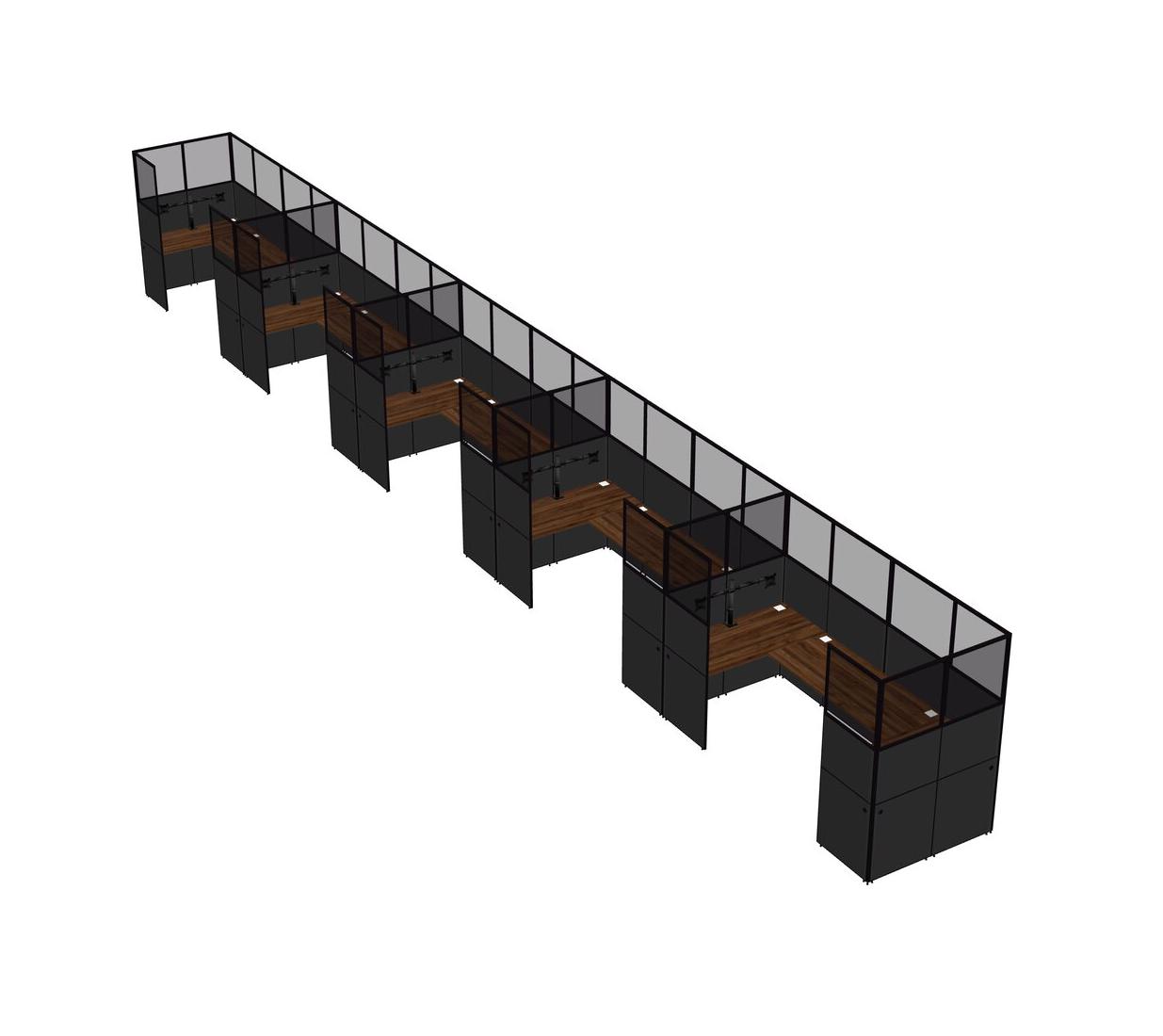 Columbia Walnut U-shaped Panel System For 5 Person + Monitor Arm (double Arms) For 5 User(s)