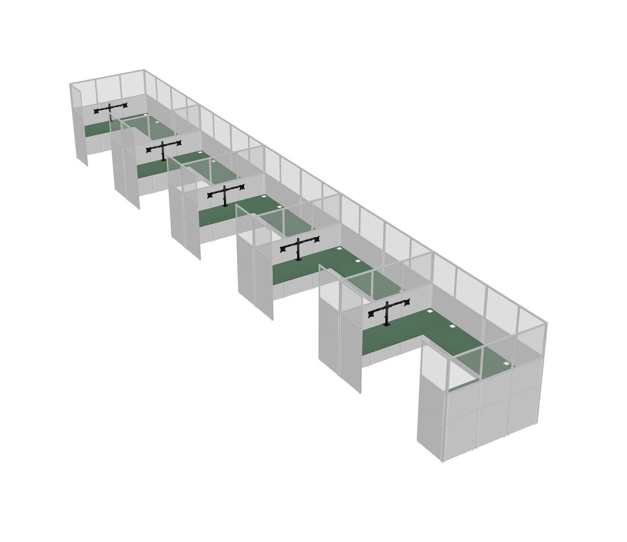 Green U-shaped Panel System For 5 Person + Monitor Arm (double Arms) For 5 User(s)