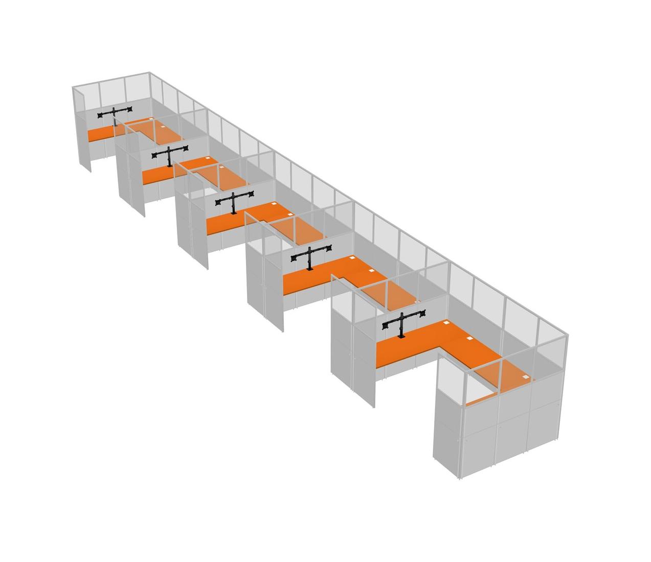 Orange U-shaped Panel System For 5 Person + Monitor Arm (double Arms) For 5 User(s)