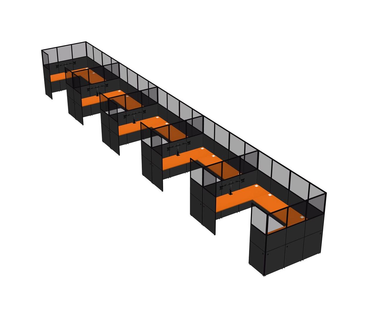 Orange U-shaped Panel System For 5 Person + Monitor Arm (double Arms) For 5 User(s)