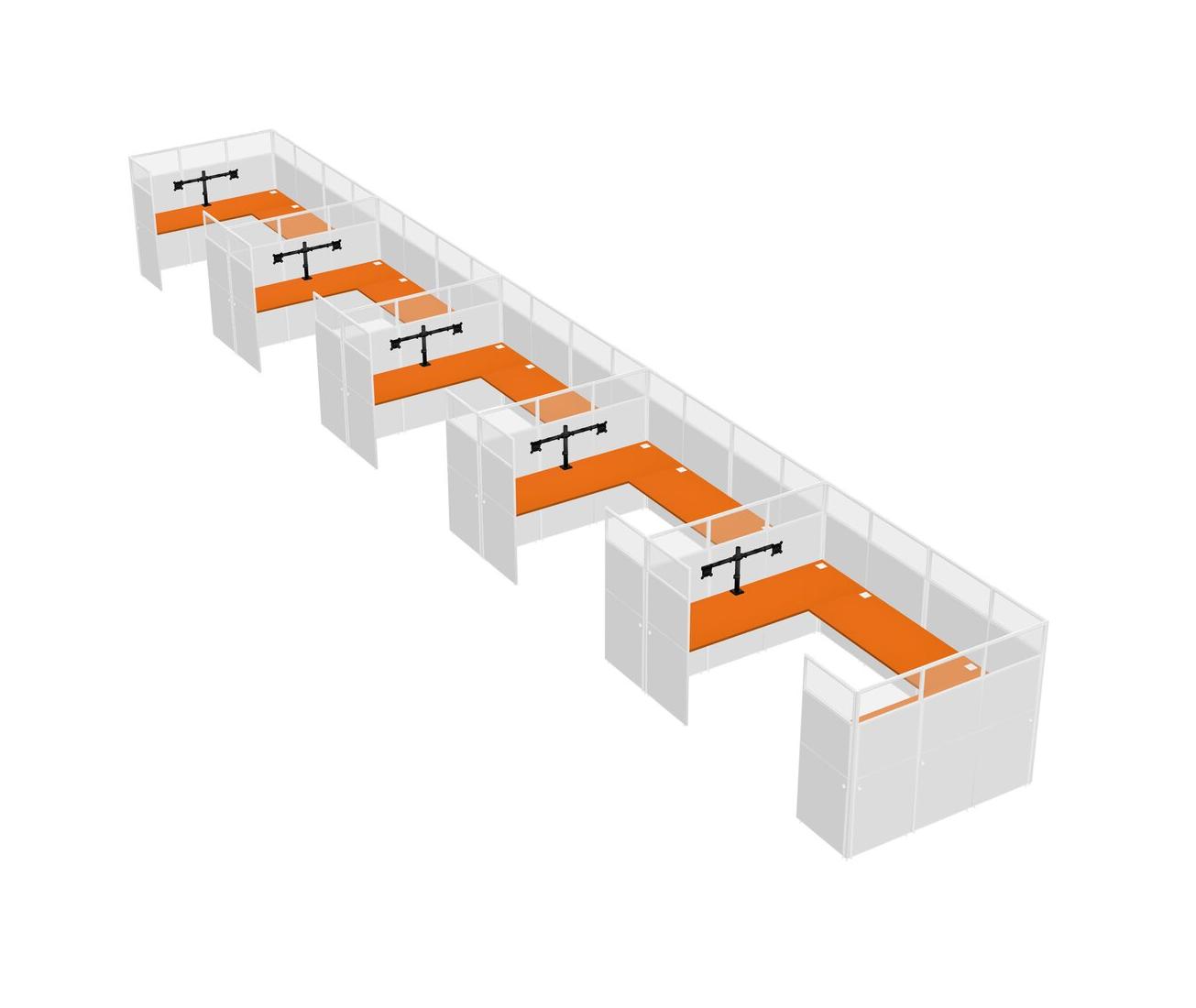 Orange U-shaped Panel System For 5 Person + Monitor Arm (double Arms) For 5 User(s)