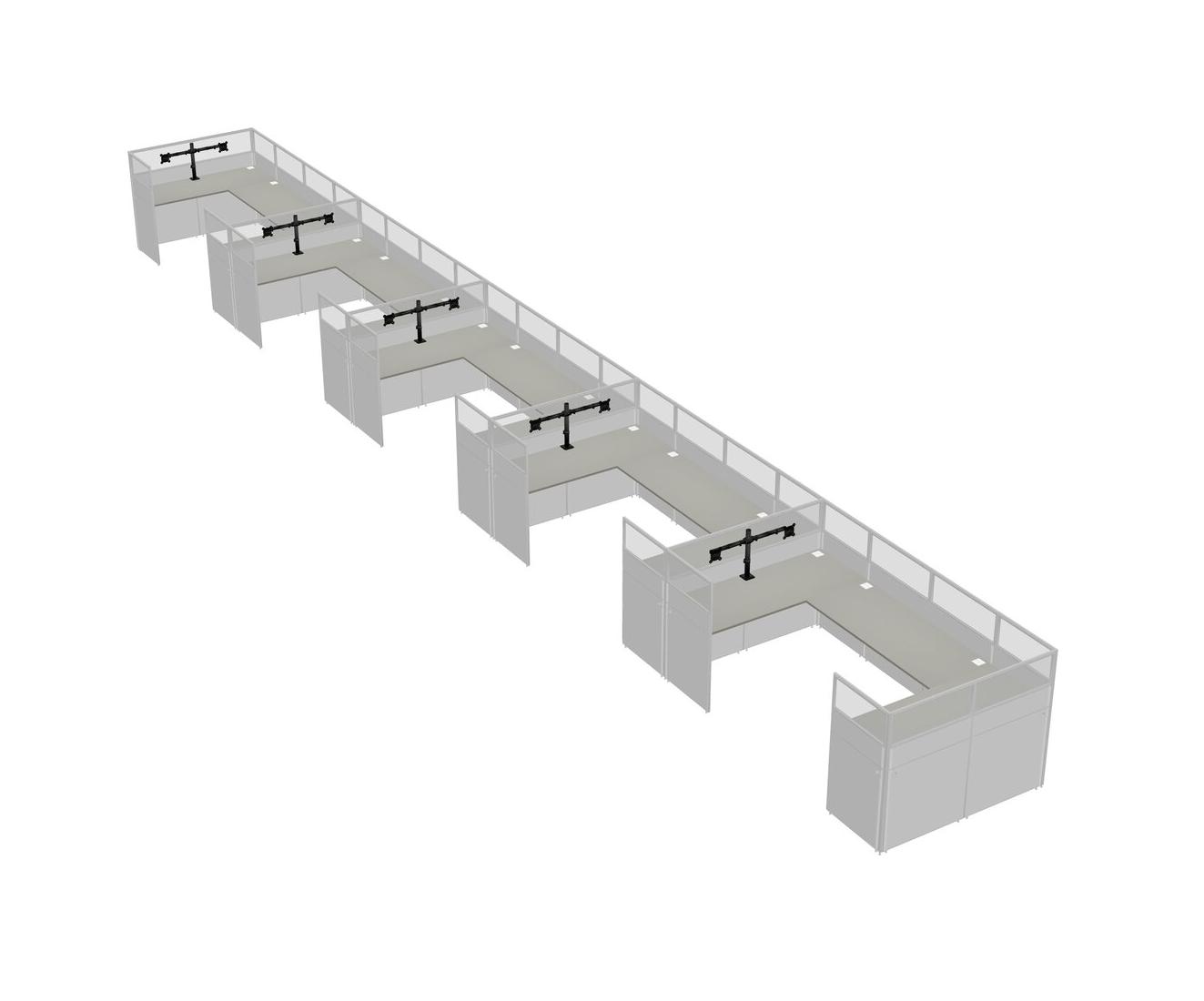 Grey Shadows U-shaped Panel System For 5 Person + Monitor Arm (double Arms) For 5 User(s)