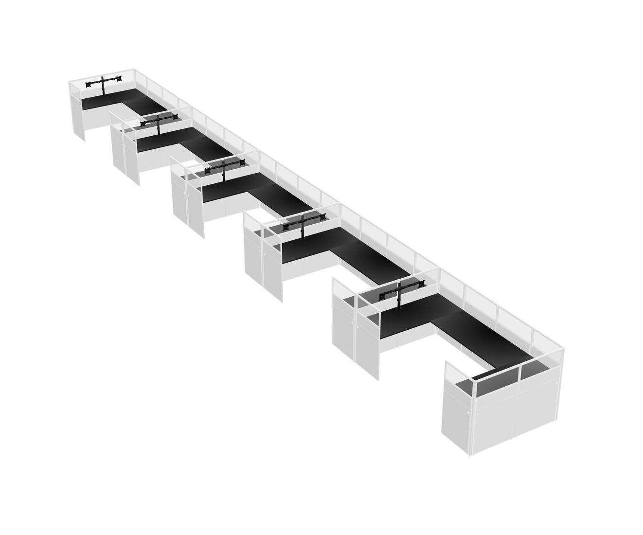Black U-shaped Panel System For 5 Person + Monitor Arm (double Arms) For 5 User(s)