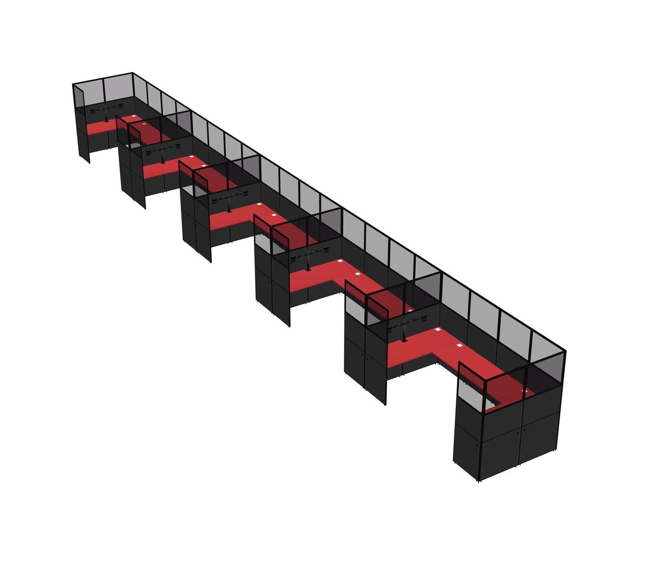 Prism Red U-shaped Panel System For 5 Person + Monitor Arm (double Arms) For 5 User(s)