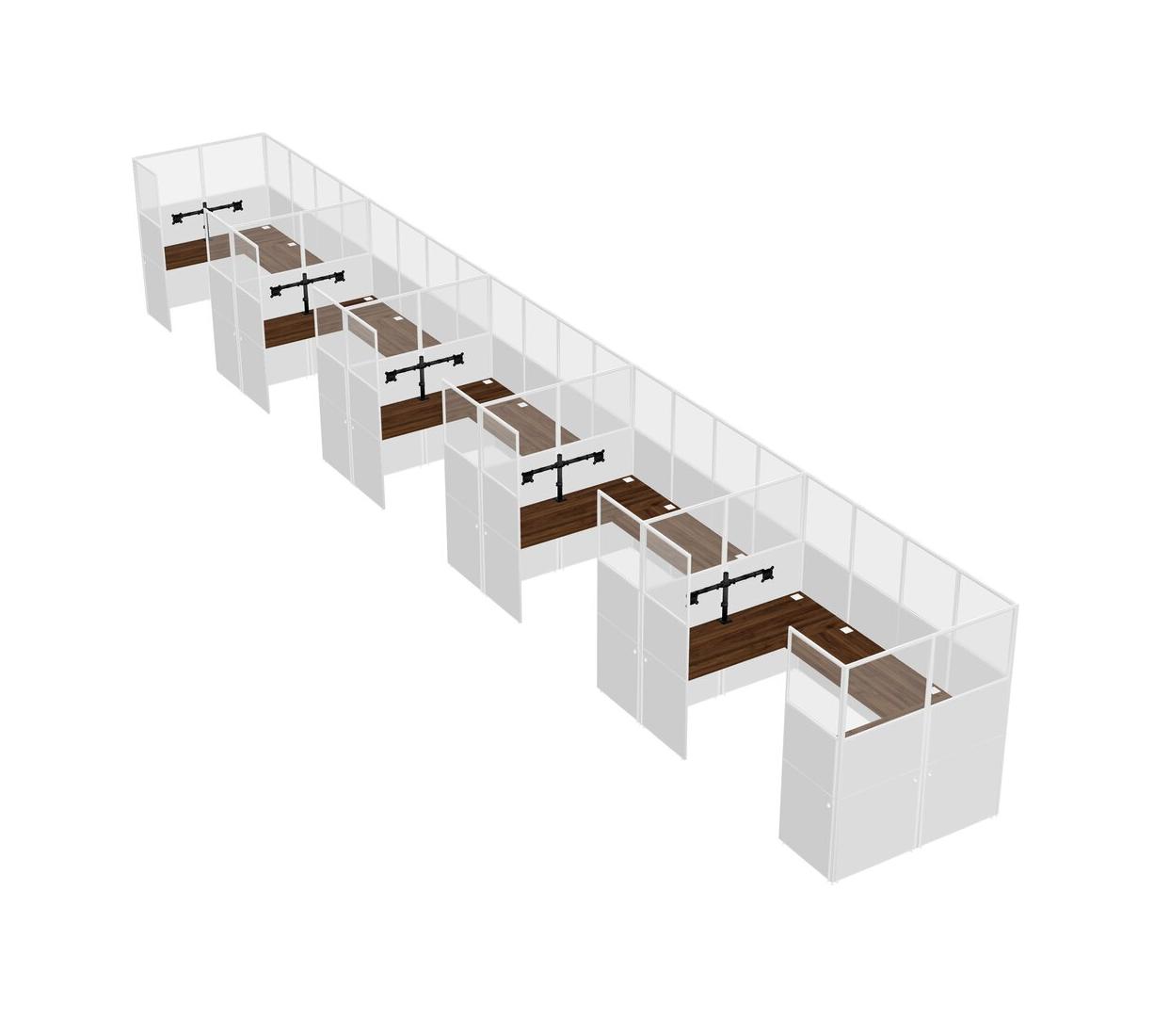 Columbia Walnut U-shaped Panel System For 5 Person + Monitor Arm (double Arms) For 5 User(s)
