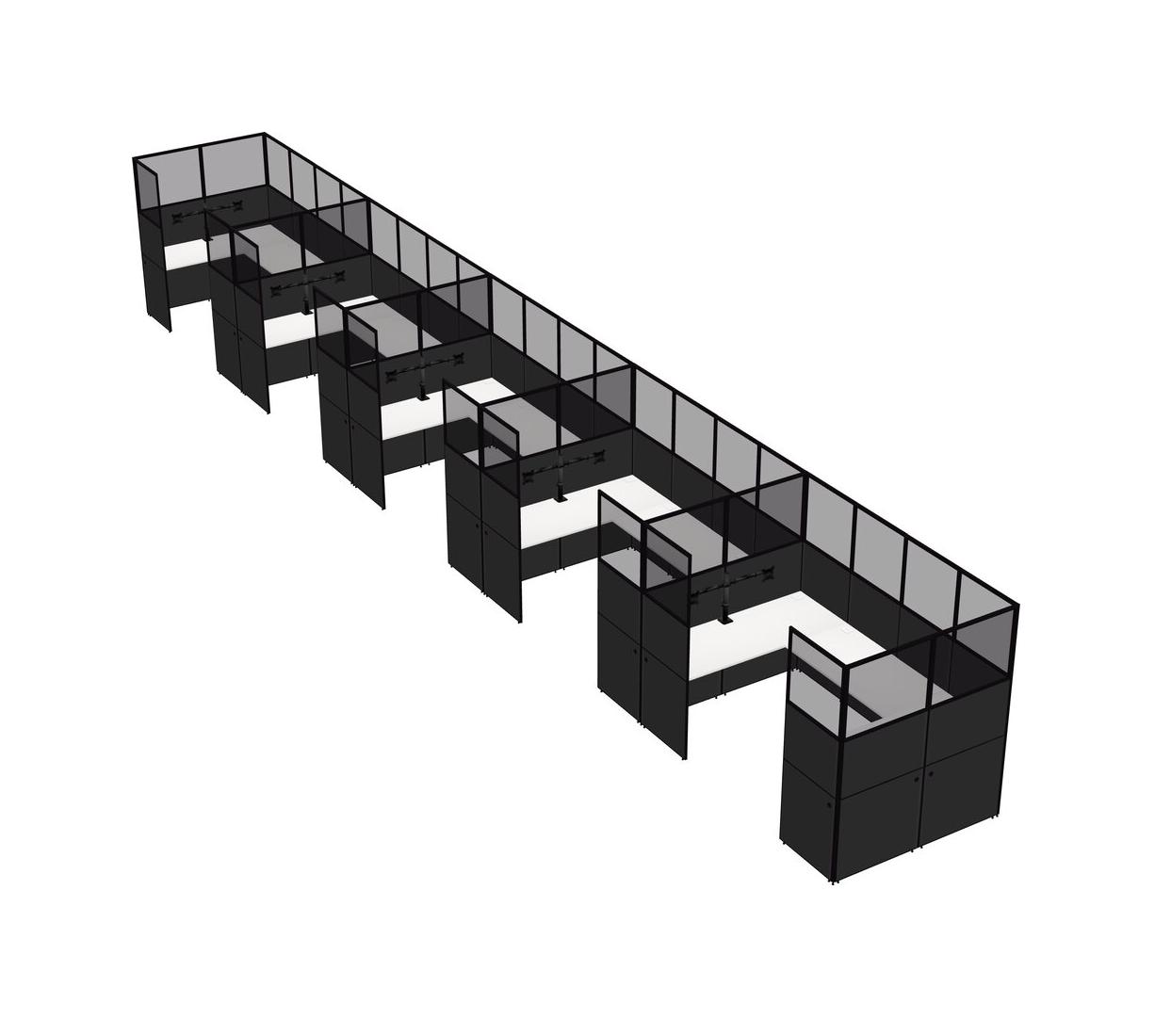 White U-shaped Panel System For 5 Person + Monitor Arm (double Arms) For 5 User(s)