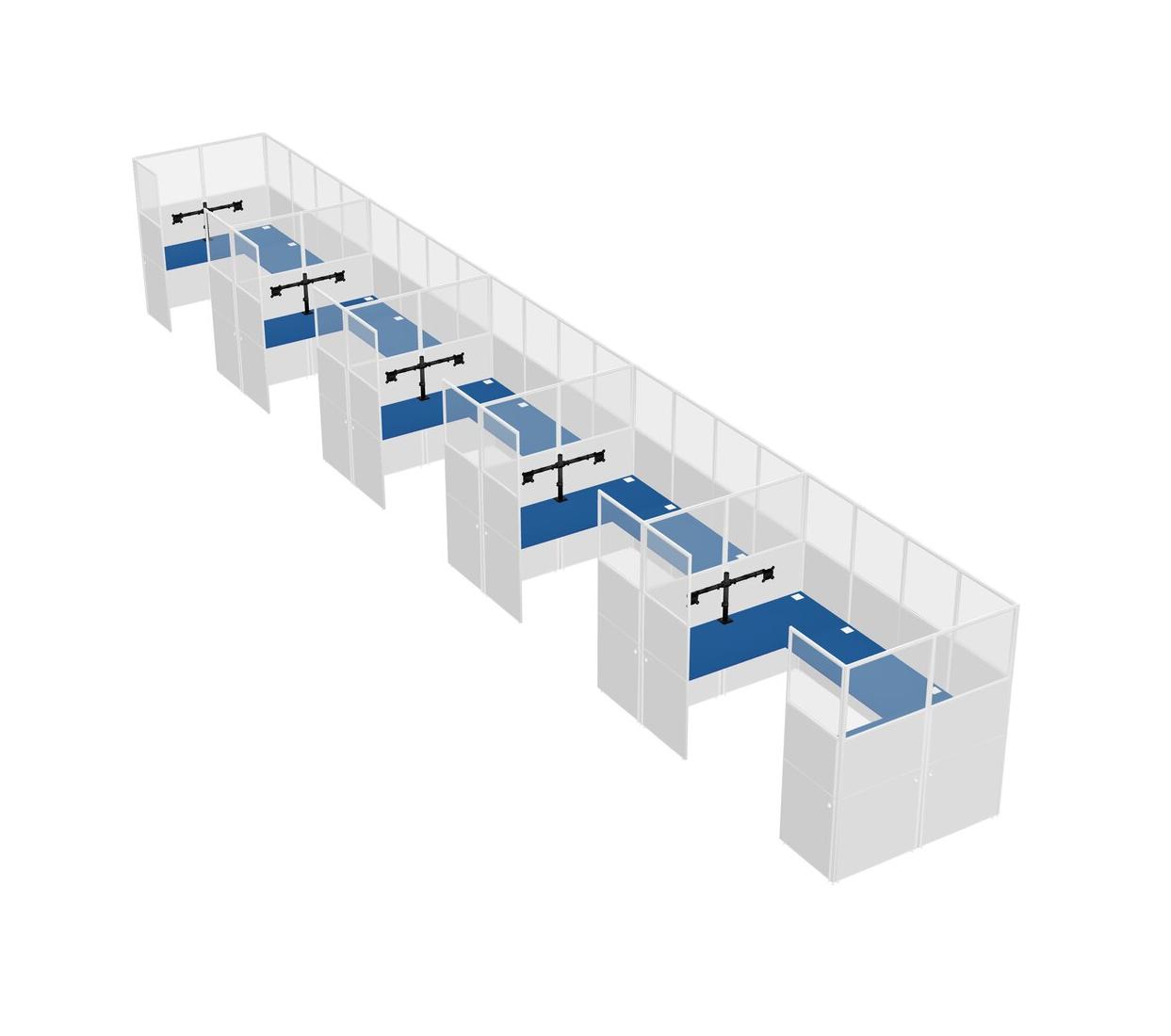 Prism Blue U-shaped Panel System For 5 Person + Monitor Arm (double Arms) For 5 User(s)
