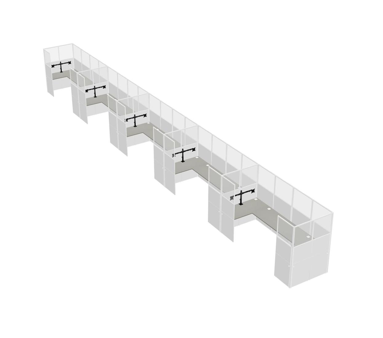 Grey Shadows U-shaped Panel System For 5 Person + Monitor Arm (double Arms) For 5 User(s)