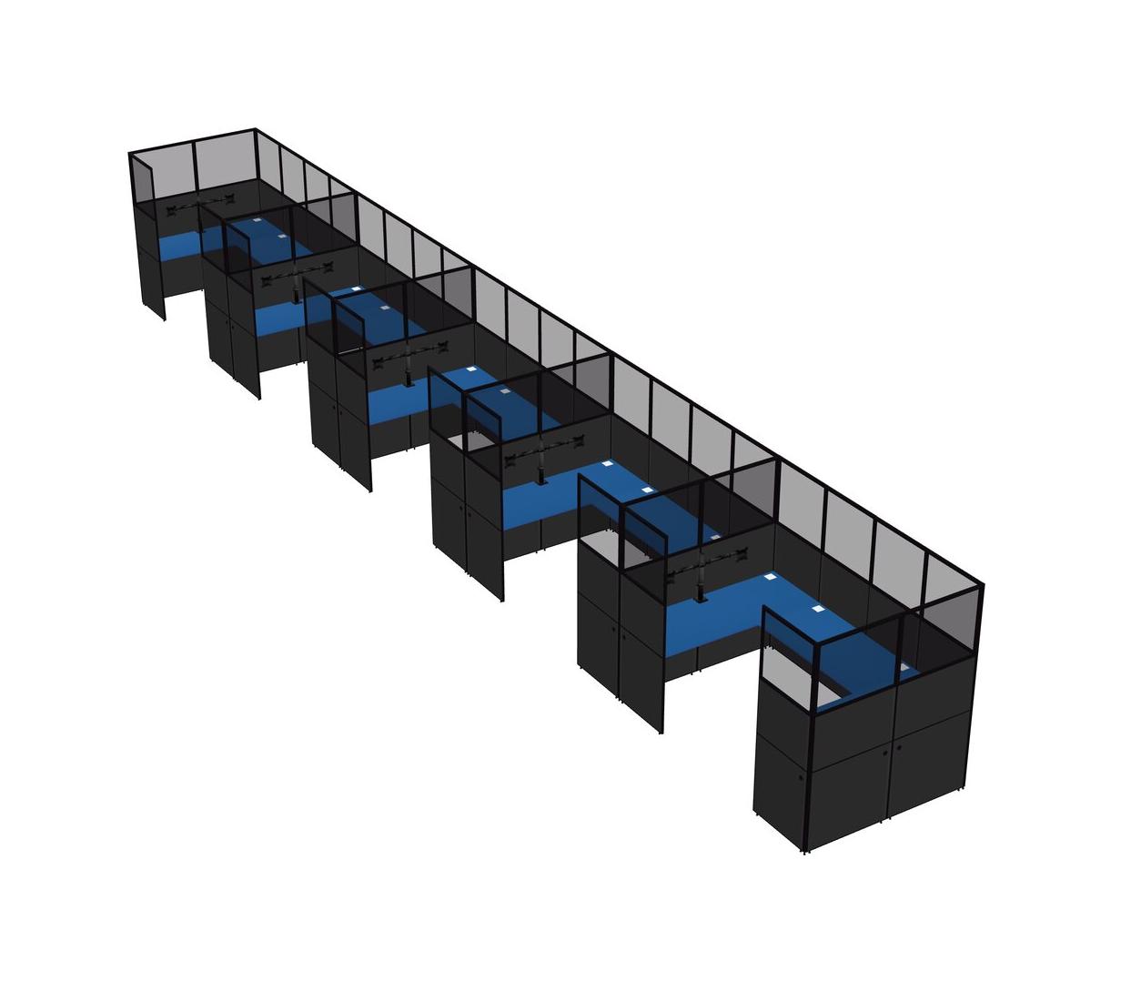 Prism Blue U-shaped Panel System For 5 Person + Monitor Arm (double Arms) For 5 User(s)