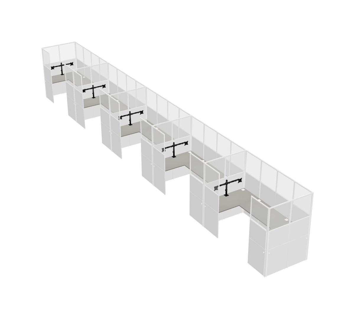 Grey Shadows U-shaped Panel System For 5 Person + Monitor Arm (double Arms) For 5 User(s)
