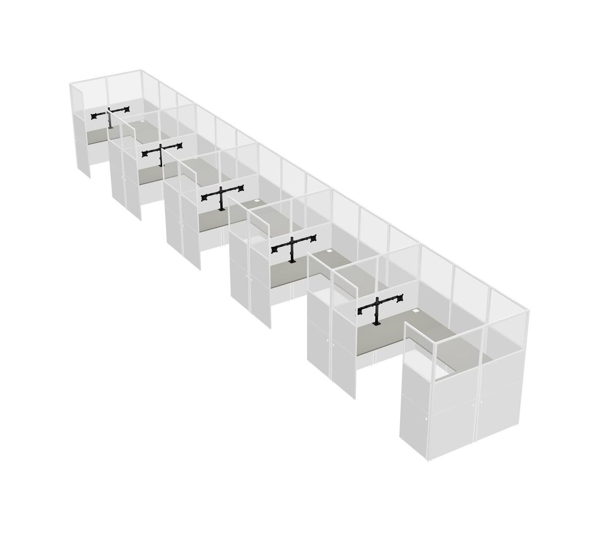 Grey Shadows U-shaped Panel System For 5 Person + Monitor Arm (double Arms) For 5 User(s)