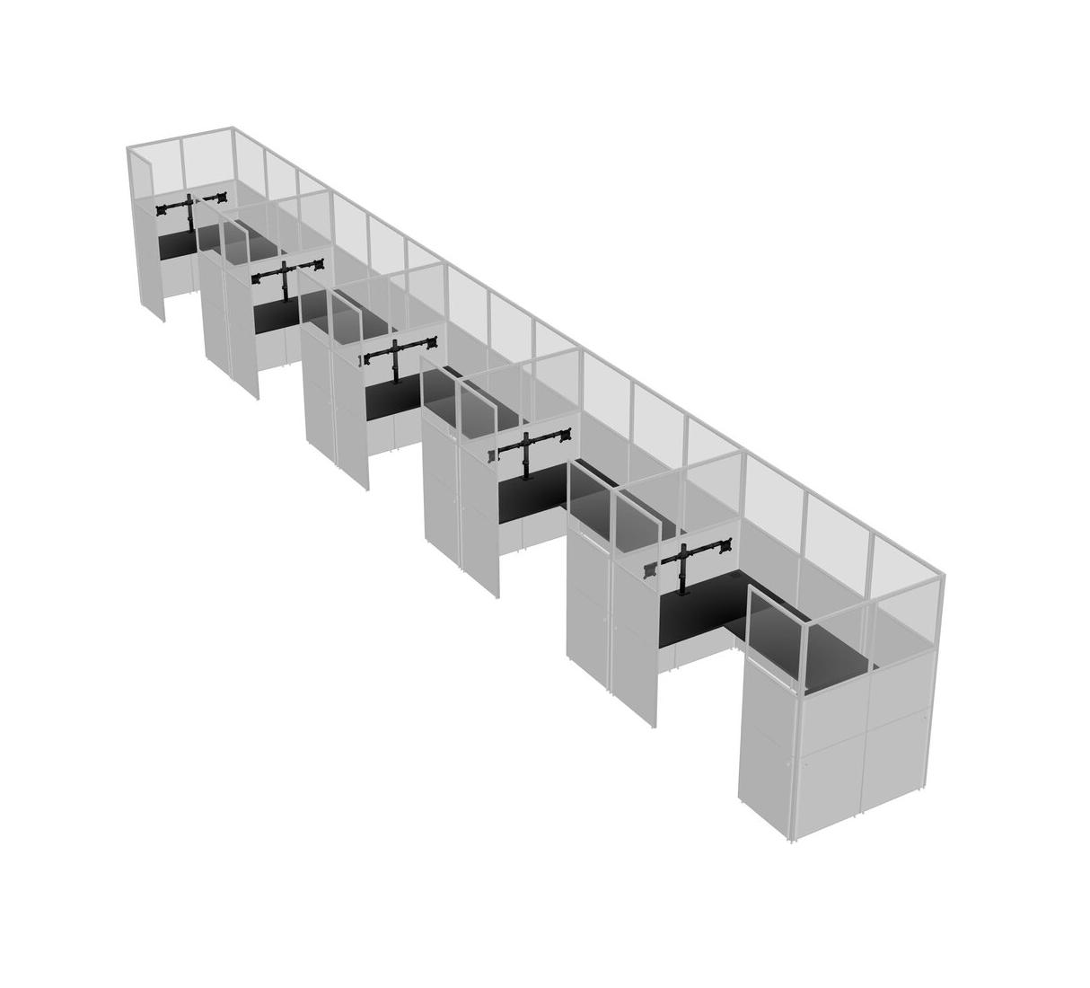 Black U-shaped Panel System For 5 Person + Monitor Arm (double Arms) For 5 User(s)