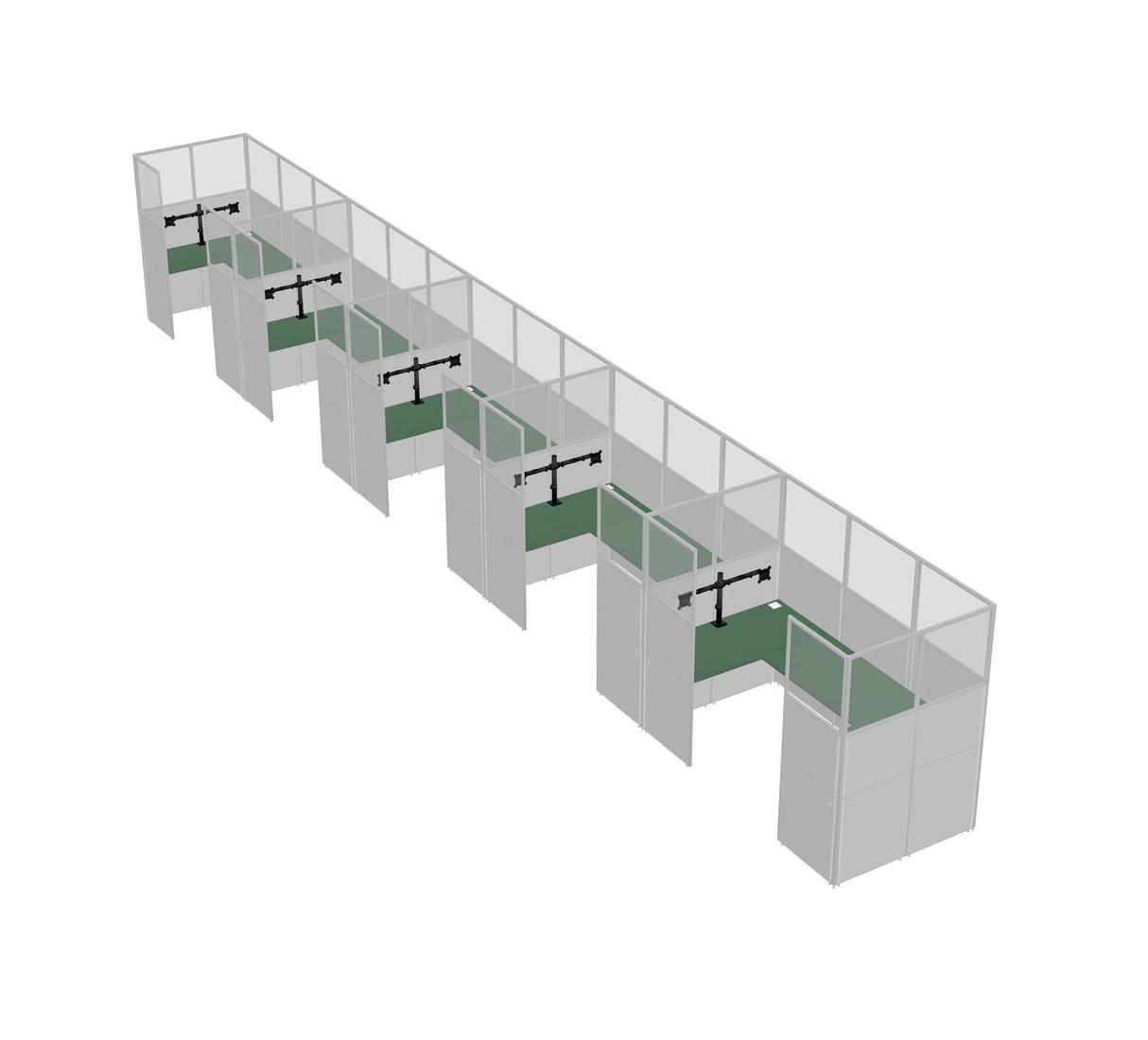 Green U-shaped Panel System For 5 Person + Monitor Arm (double Arms) For 5 User(s)