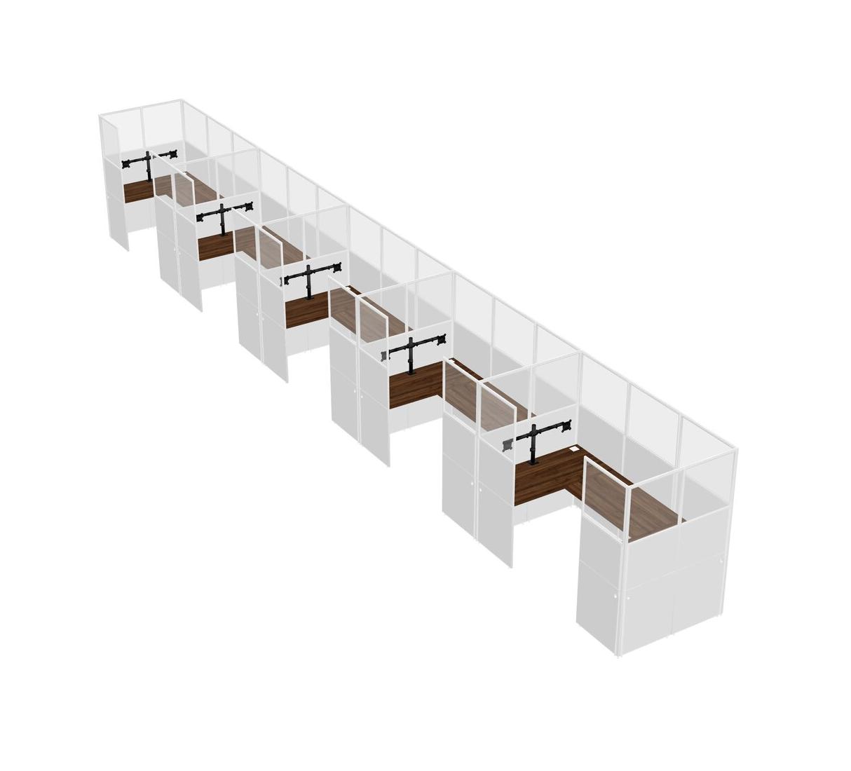 Columbia Walnut U-shaped Panel System For 5 Person + Monitor Arm (double Arms) For 5 User(s)