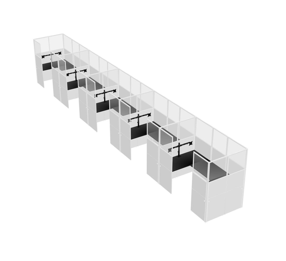 Black U-shaped Panel System For 5 Person + Monitor Arm (double Arms) For 5 User(s)