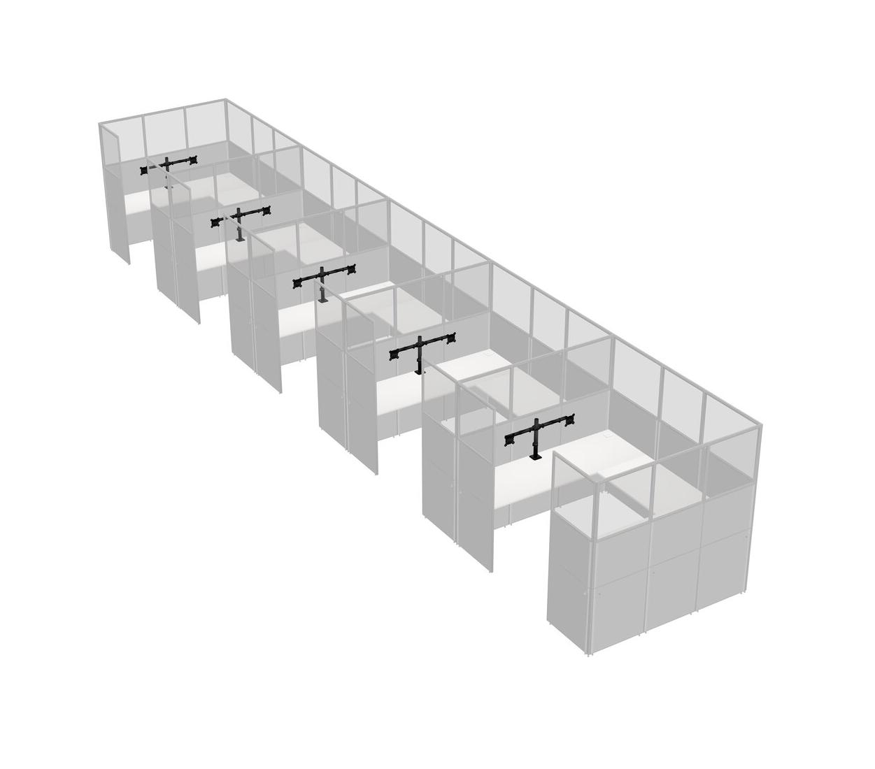 White U-shaped Panel System For 5 Person + Monitor Arm (double Arms) For 5 User(s)