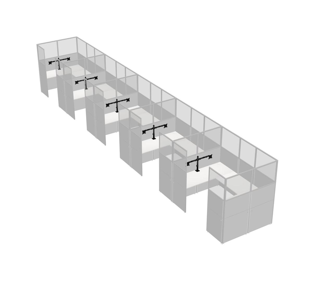 White U-shaped Panel System For 5 Person + Monitor Arm (double Arms) For 5 User(s)
