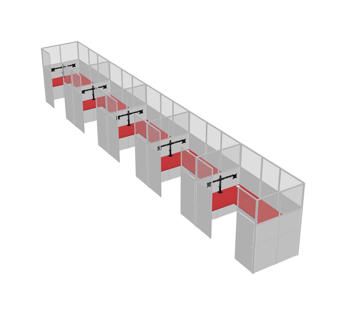 Prism Red U-shaped Panel System For 5 Person + Monitor Arm (double Arms) For 5 User(s)
