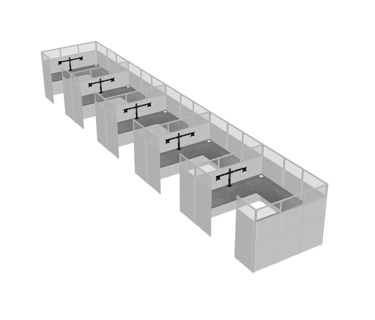 Grey U-shaped Panel System For 5 Person + Monitor Arm (double Arms) For 5 User(s)