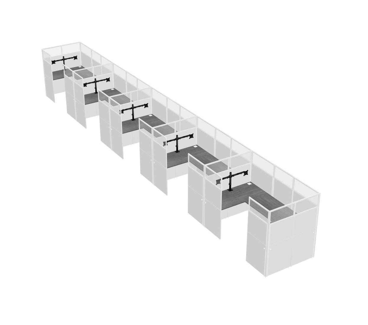 Grey U-shaped Panel System For 5 Person + Monitor Arm (double Arms) For 5 User(s)