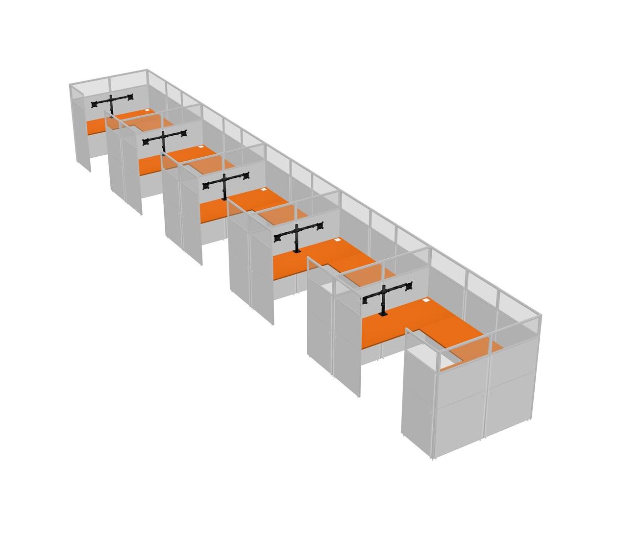 Orange U-shaped Panel System For 5 Person + Monitor Arm (double Arms) For 5 User(s)
