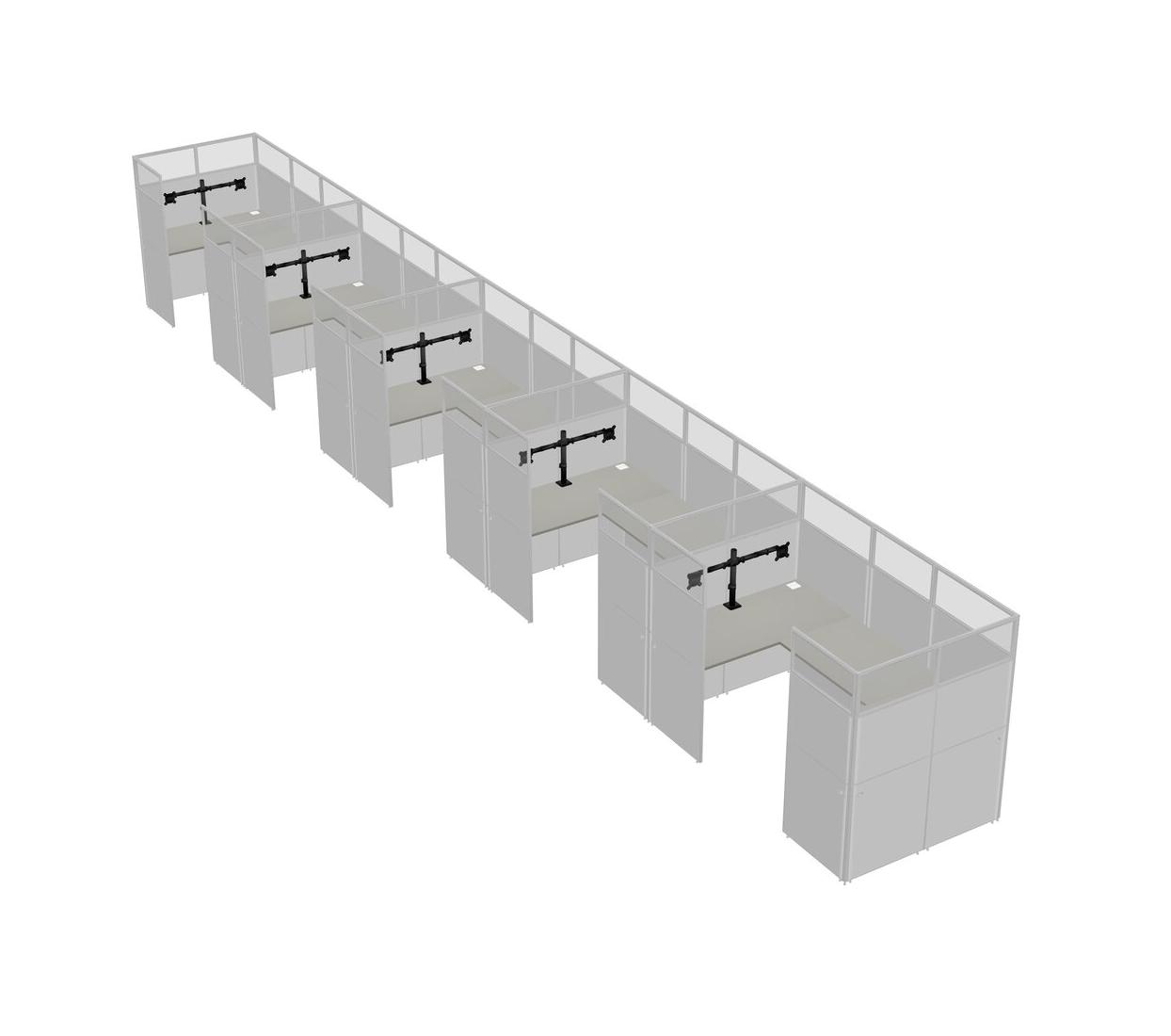 Grey Shadows U-shaped Panel System For 5 Person + Monitor Arm (double Arms) For 5 User(s)